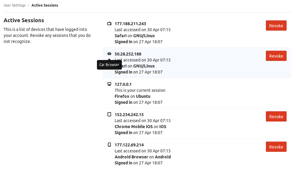 You can sign out of a session using our DeleteSession endpoint, which will invalidate thesession_token sent in. As a best practice, we recommend that you show a list of sessions using our ListSession endpoint, which allows you to get a list of active sessions tied to the specified user_id (an example UI is provided below for reference).